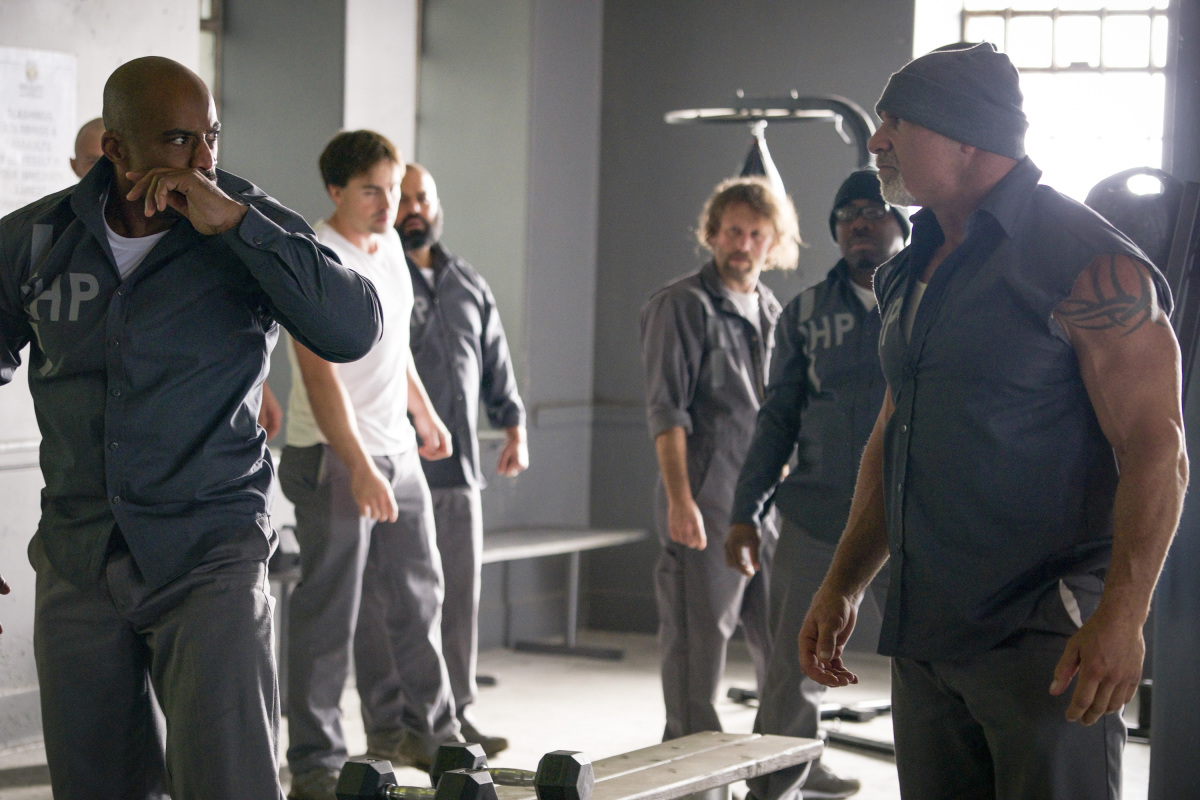 Flash — “The Elongated Knight Rises” — Image Number: FLA411a_0464b.jpg — Pictured (L-R): Sean Millington as Prison Gang Leader and Bill Goldberg as Big Sir — Photo: Shane Harvey/The CW — é 2018 The CW Network, LLC. All rights reserved