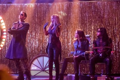 Flash — “The Elongated Knight Rises” — Image Number: FLA411b_0093b.jpg — Pictured (L-R): Devon Graye as Axel Walker/Trickster, Corinne Bohrer as Zoey Clark/Prank, Danielle Panabaker as Caitlin Snow/Killer Frost and Carlos Valdes as Cisco Ramon/Vibe — Photo: Katie Yu/The CW — © 2018 The CW Network, LLC. All rights reserved